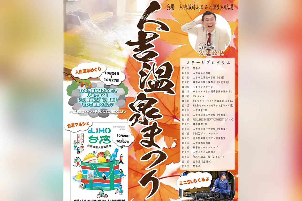 The Hitoyoshi Onsen Festival takes place at the Hitoyoshi Castle Ruins Hometown Historical Square, offering a great opportunity to enjoy local attractions.