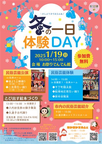 Join us for “Sashiyorikite Miranne: Winter One-Day Experience DAY” at the Matsuri Denden-kan!