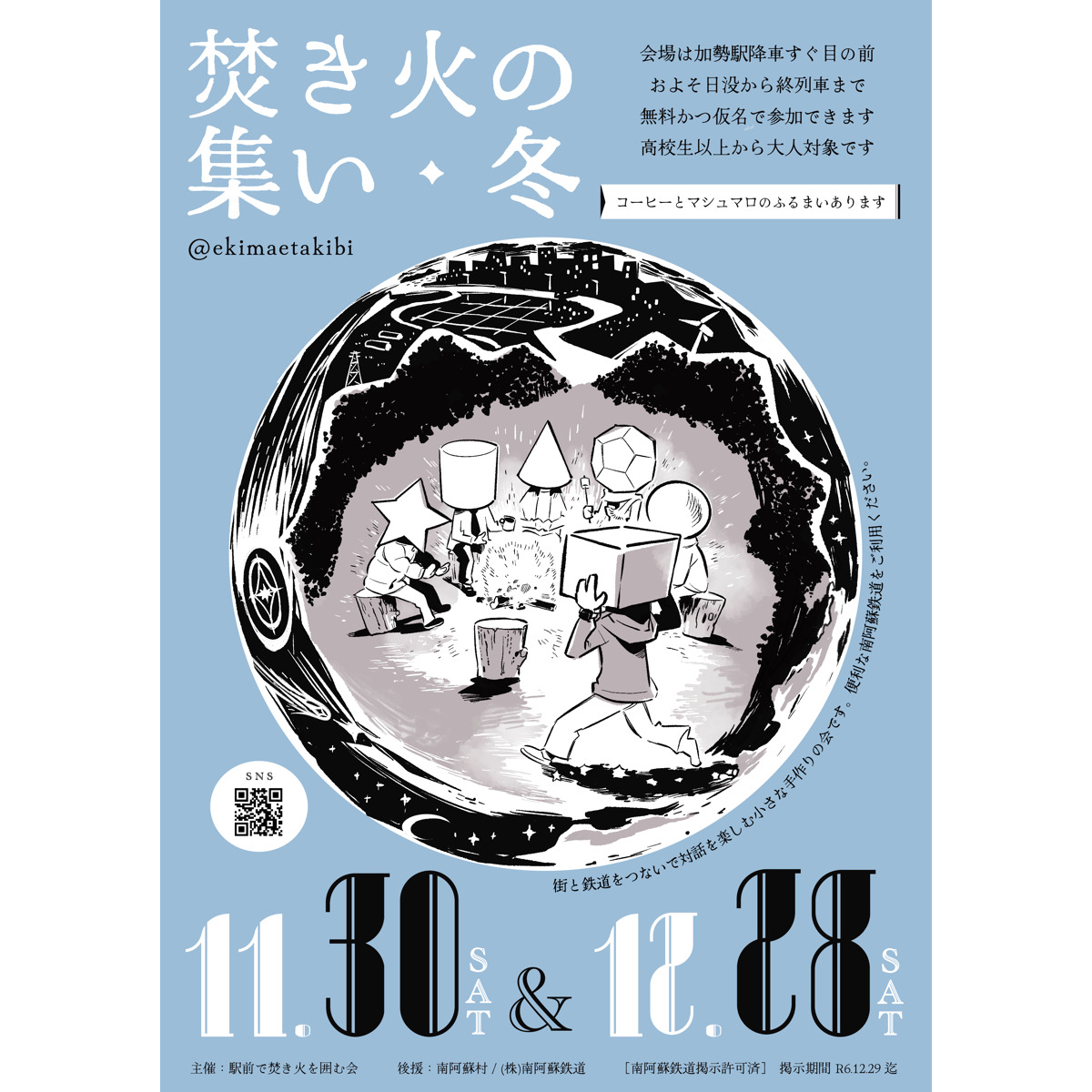 2024年11月30日(星期六)和12月28日(星期六),将在南阿苏村举行“冬季篝火聚会”。