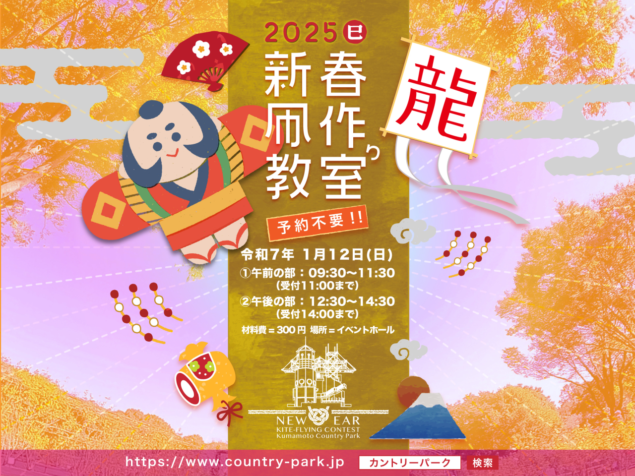 The kites you make can be flown in the New Year’s Kite Flying Contest 2025, and participation is free. (Please note that kites brought from home will not be eligible for judging.)