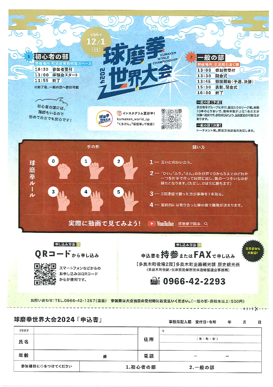 - 【参加費】 初心者の部 無料 一般の部 500円(中学生以下無料) 参加費は大会当日の受付時にお支払いください。