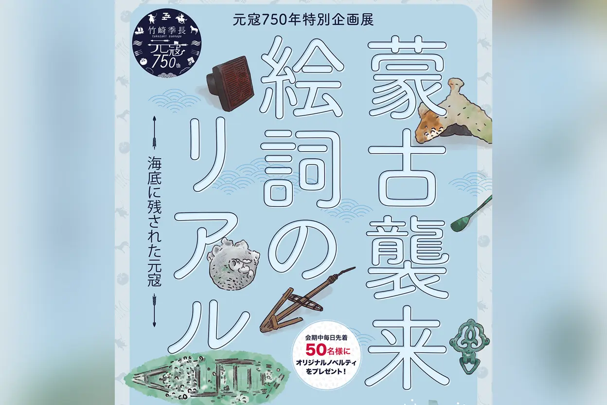 本市では、季長が残した「蒙古襲来絵詞」などの貴重な史料を基に、元寇や竹崎季長の歴史を広く知ってもらうため、元寇750年を記念した特別企画展『蒙古襲来絵詞のリアル-海底に残された元寇-』を開催します。