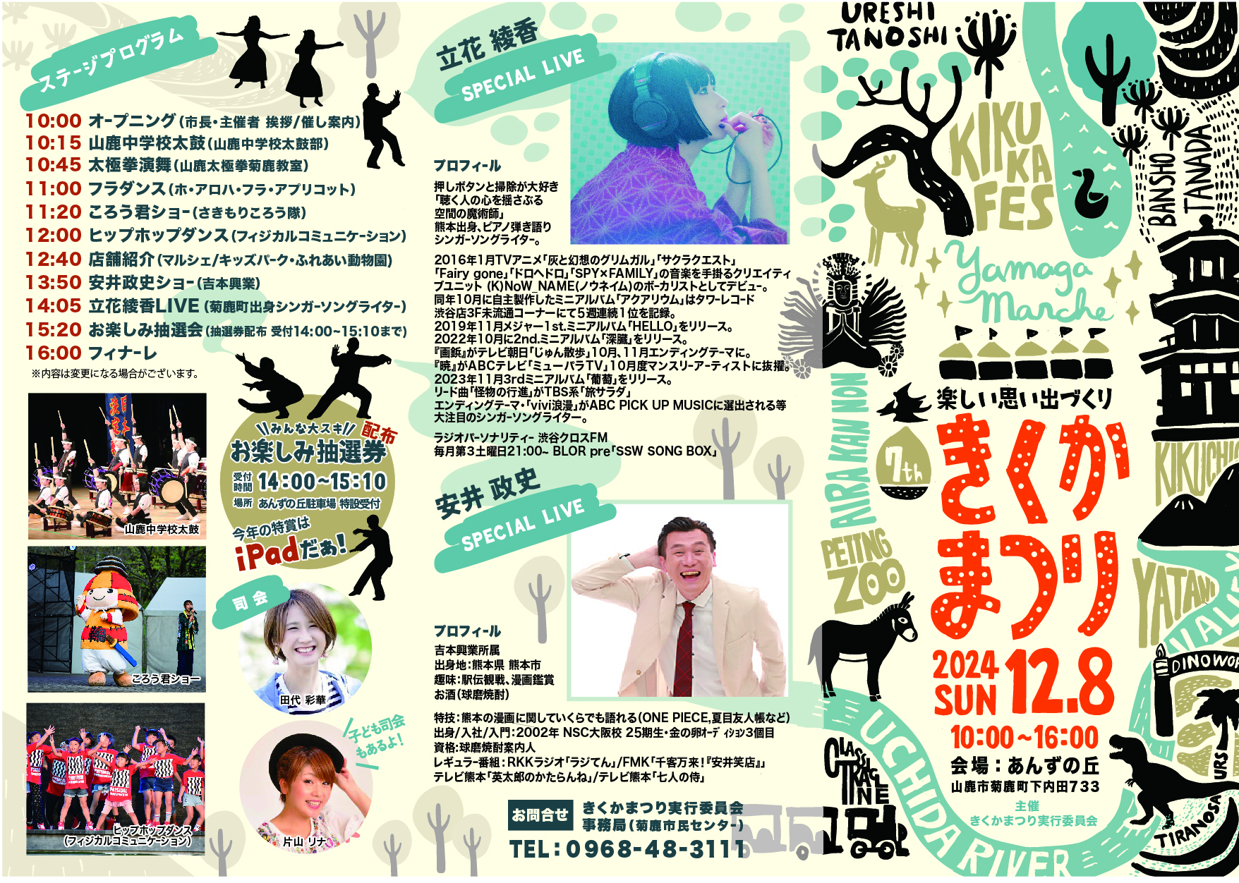 舞台表演的亮点将是菊鹿町出身的才华横溢的歌手兼词曲创作人立花绫香的精彩演出!