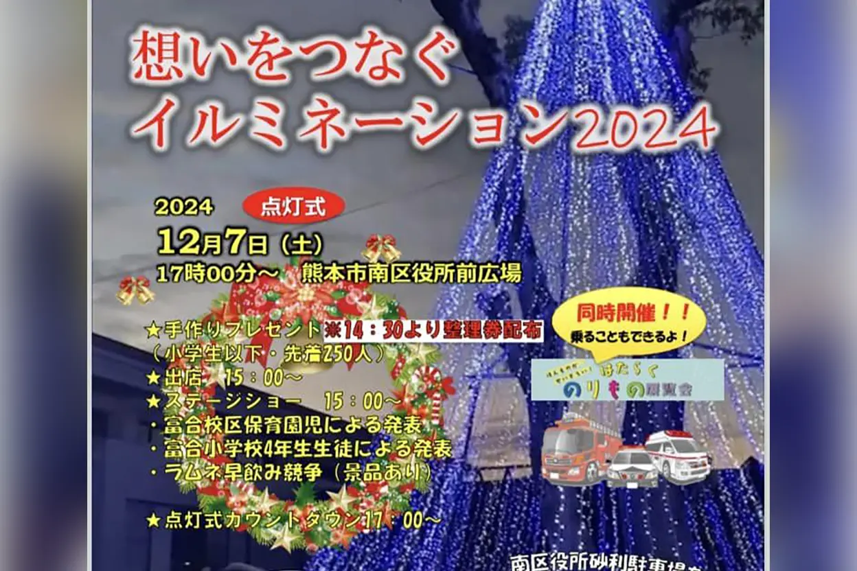 熊本市南区役所前広場で「想いをつなぐイルミネーション2024」が鮮やかに点灯します。