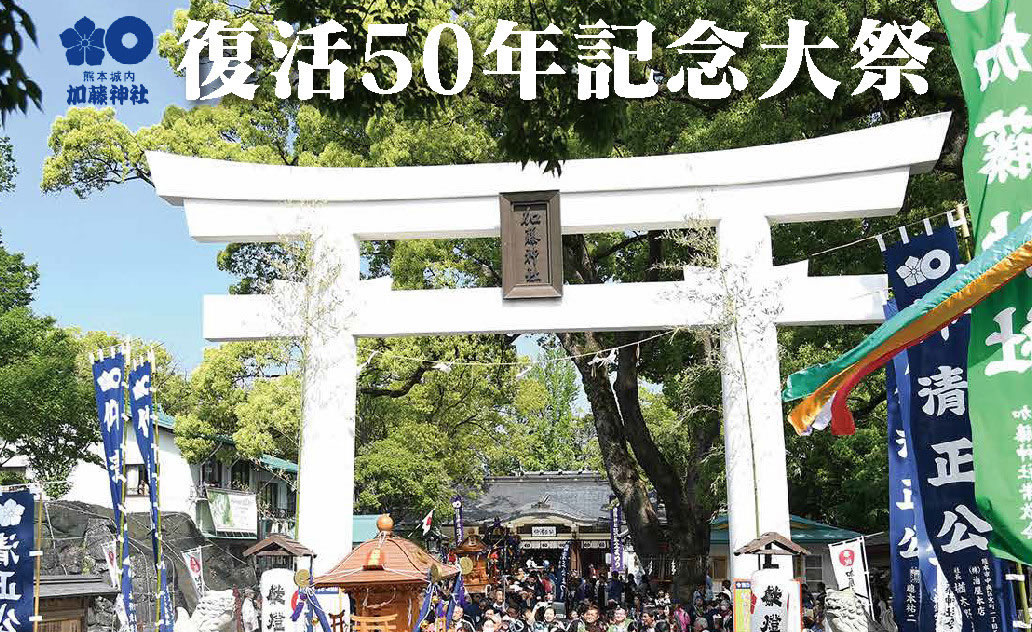 「清正公まつり」は、昭和50年に、子どもたちには「幼少期の思い出を」、若者には「心の感動を」、大人には「故郷への思いを」というスローガンのもと、長い間途絶えていた神幸行列や神輿の祭りを復活させたものです。その後、この祭りは県民の祭りとして発展し、観光の振興にも貢献しています。