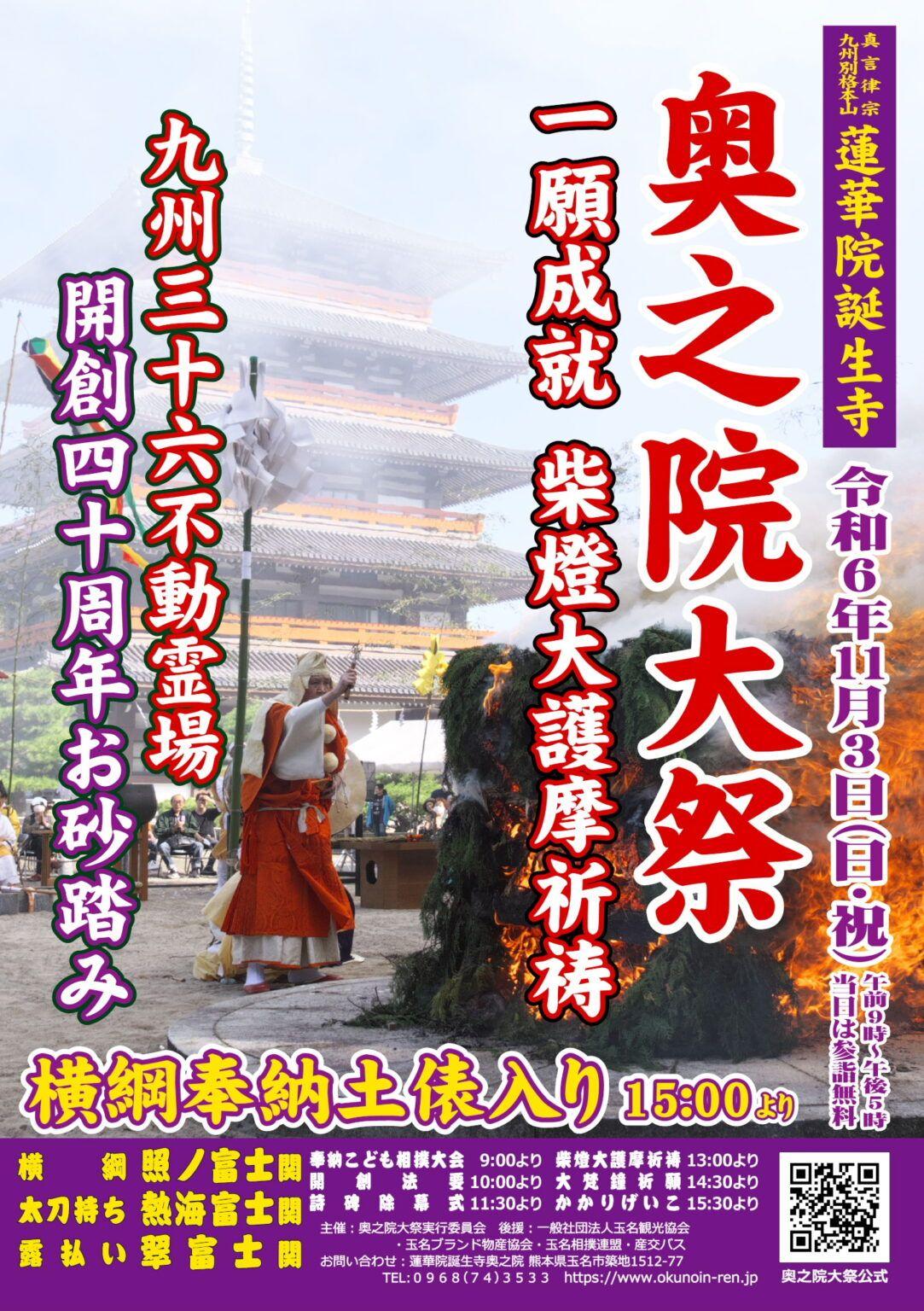 作为“愿望成真”的寺庙,许多人前来参拜蓮華院誕生寺奥之院。“奥之院大祭”每年举行,以纪念寺庙的创建。此次祭典包括“一愿成就”的“柴灯大护摩祈祷”、敲响世界上最大的“大梵钟——飞龙之钟”的“大香钟祈愿”、横纲的奉纳土俵入和儿童相扑比赛、以及练习等活动。