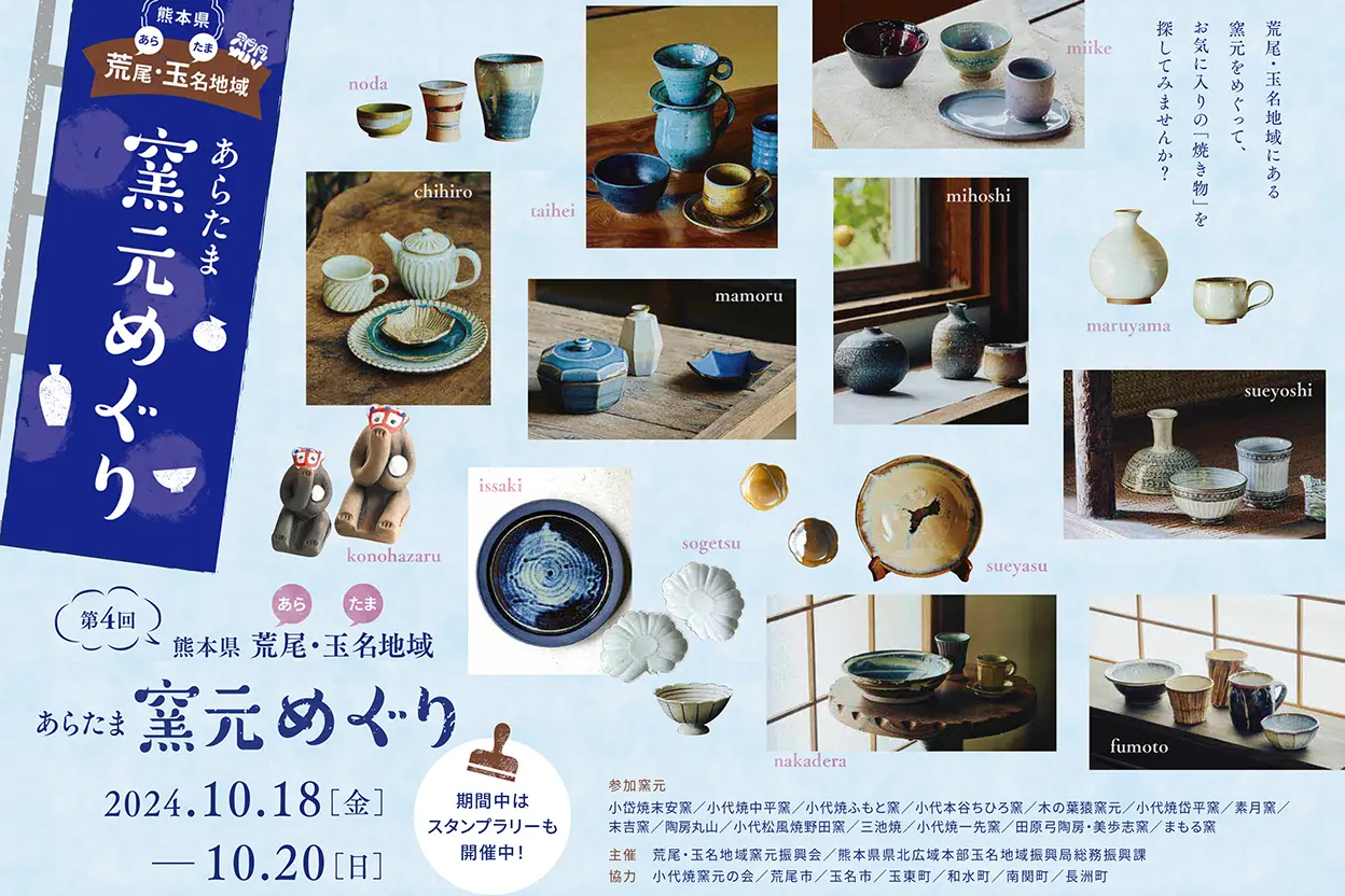 10月18日(金)から20日(日)の3日間、荒尾・玉名地域で開催される「焼き物巡り」をお楽しみください!