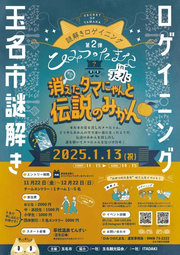 在**“秘密的玉名”第二季中,参赛者将前往玉名市天水地区的约30个检查点**,拍照并获得积分。