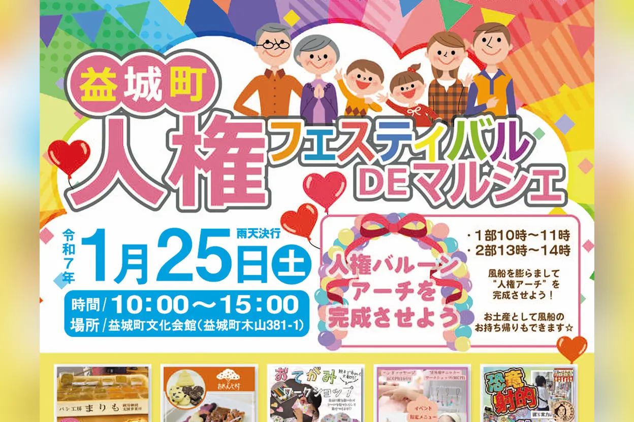 The “Mashiki Town Human Rights Festival” will be held simultaneously, offering various attractions where you can enjoy and reflect on human rights issues, such as discrimination and other human rights-related themes.