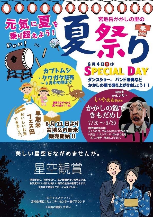 かかしの里では7月20日から「元気に夏を乗り越えよう!!」をテーマに、夏祭りを開催します。