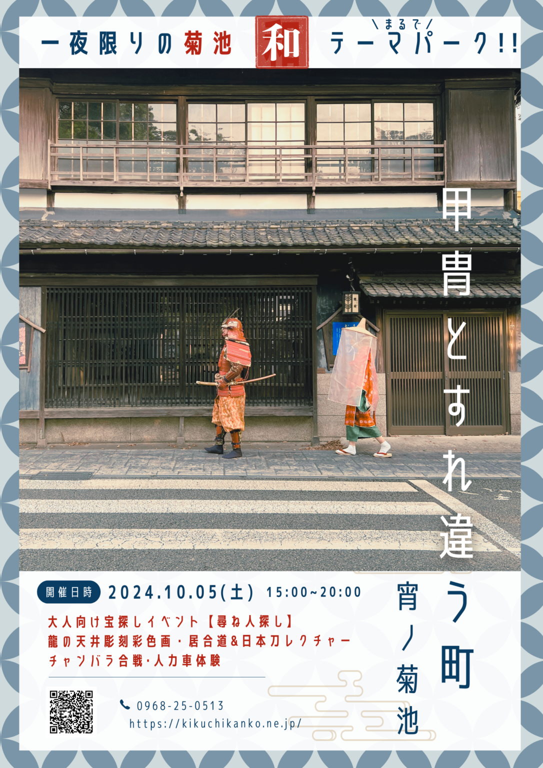 秋の夜、菊池市が幻想的な世界に変わるイベント「甲冑とすれ違う町 宵ノ菊池」が、菊池観光協会の主催で開催されます。この街中を巡るイベントでは、菊池ならではの和の体験を存分に楽しむことができます。