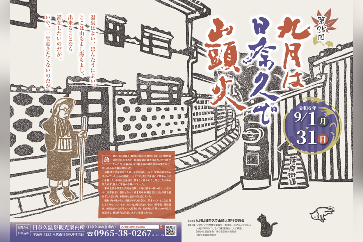 古くから愛され、湯治の湯として知られる日奈久温泉で、山頭火の世界を楽しむイベントが開催されます。