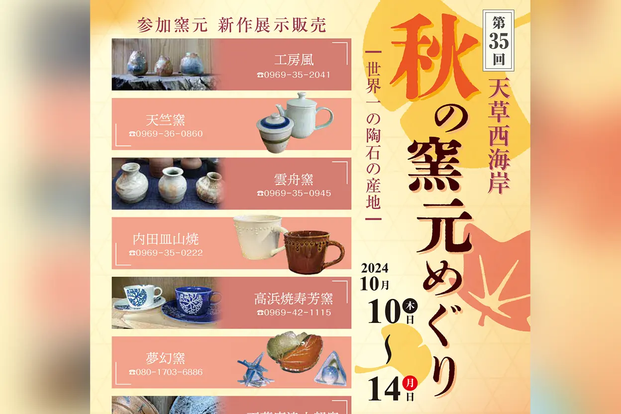 「天草西海岸秋の窯元めぐり」が、苓北町と天草市天草町の合計7つの窯元で開催されます。