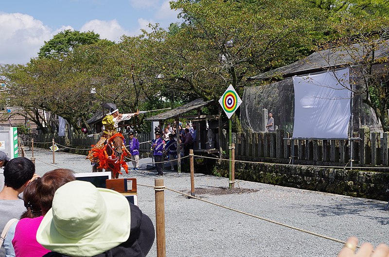 3か所の的に向かって、古来の装束に身を包んだ射手が馬上から矢を放ちます。