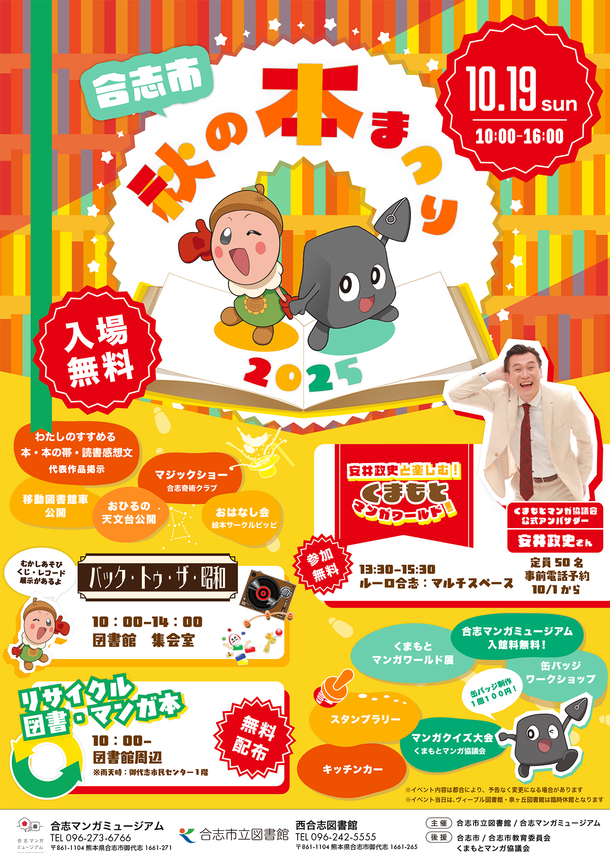 本と遊びとアートの世界をまるごと楽しめる、秋の恒例イベント「合志市秋の本まつり2025」を開催します。