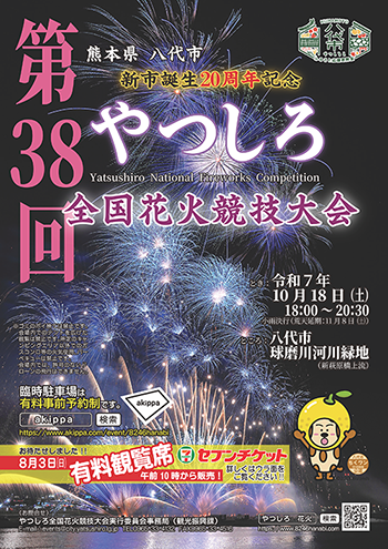 この大会は、日本各地の煙火業者の技術向上を図るとともに、八代市の観光振興や地域産業の発展に貢献することを目的としており、今回で第38回の開催を迎えます。