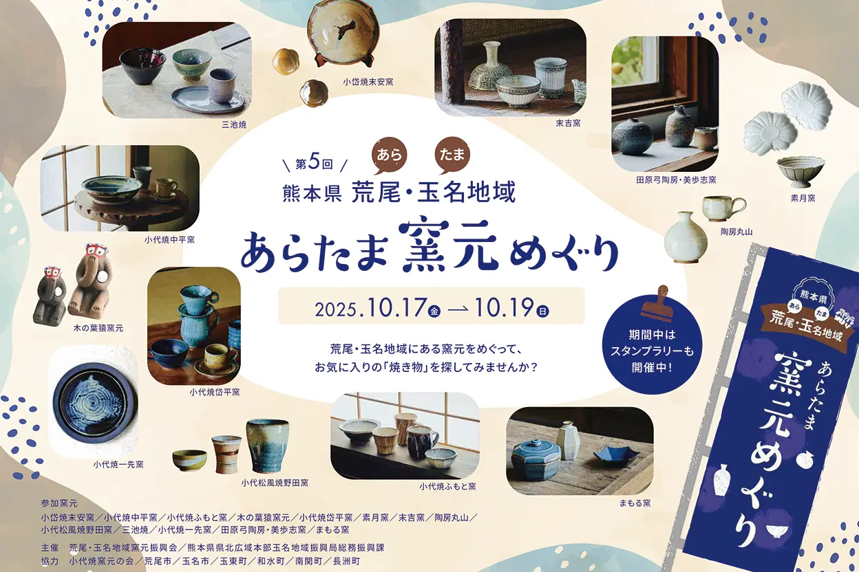 From Friday, October 17 to Sunday, October 19, enjoy the “Pottery Tour” across the Arao and Tamana areas in Kumamoto Prefecture.
