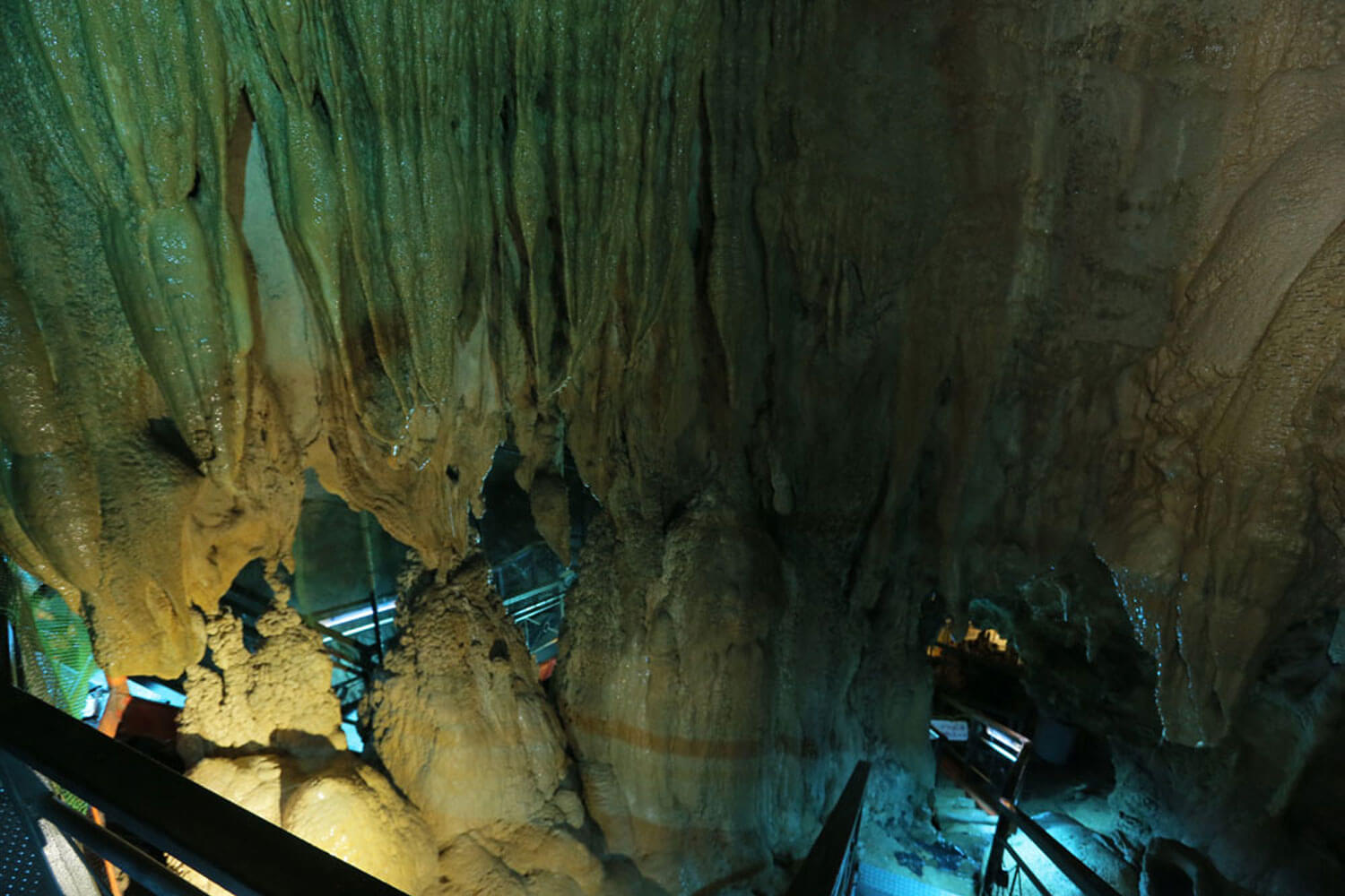 美しい鍾乳石や石柱が見られ、幻想的な景観が広がっています。