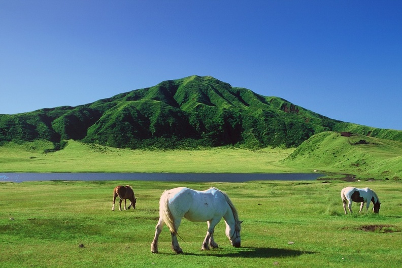 草千里是一个广阔的草原,位于美丽的阿苏高原,是一个可以享受四季变换自然的地方。
